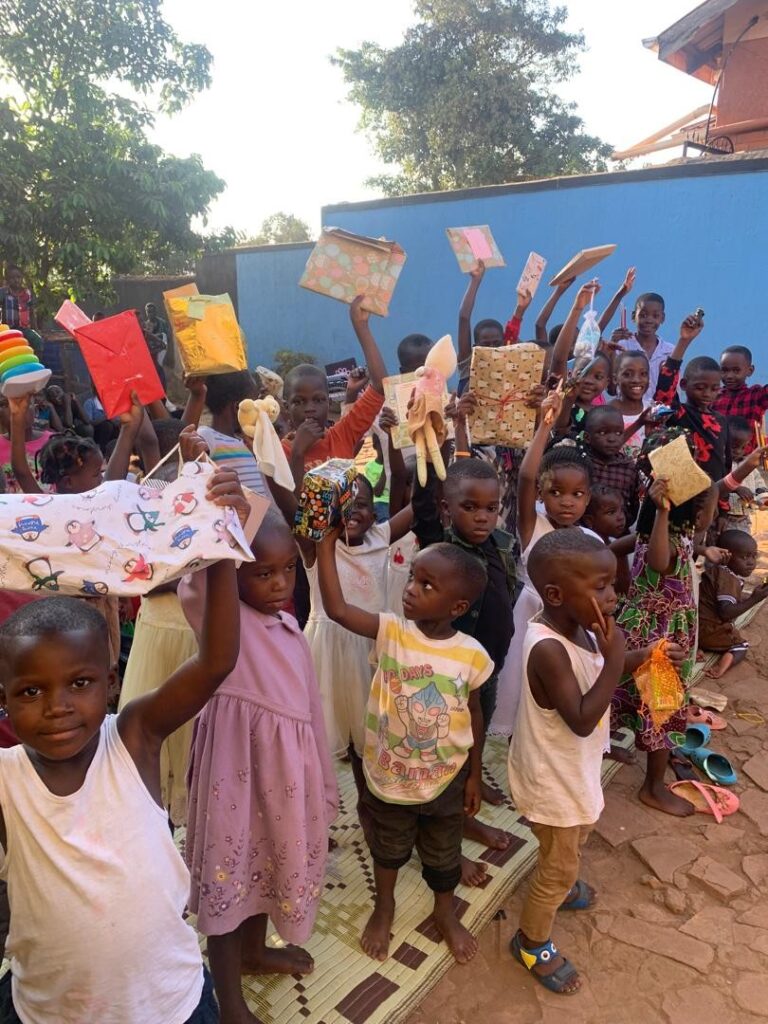 Das Paket mit den Spielsachen einiger Kinder des Kindergarten Regenbogen in Steinbach ist in Uganda angekommen und die Geschenke wurden gleich am Weihnachtsfest an die Kinder verteilt. Es herrschte große Freude.
