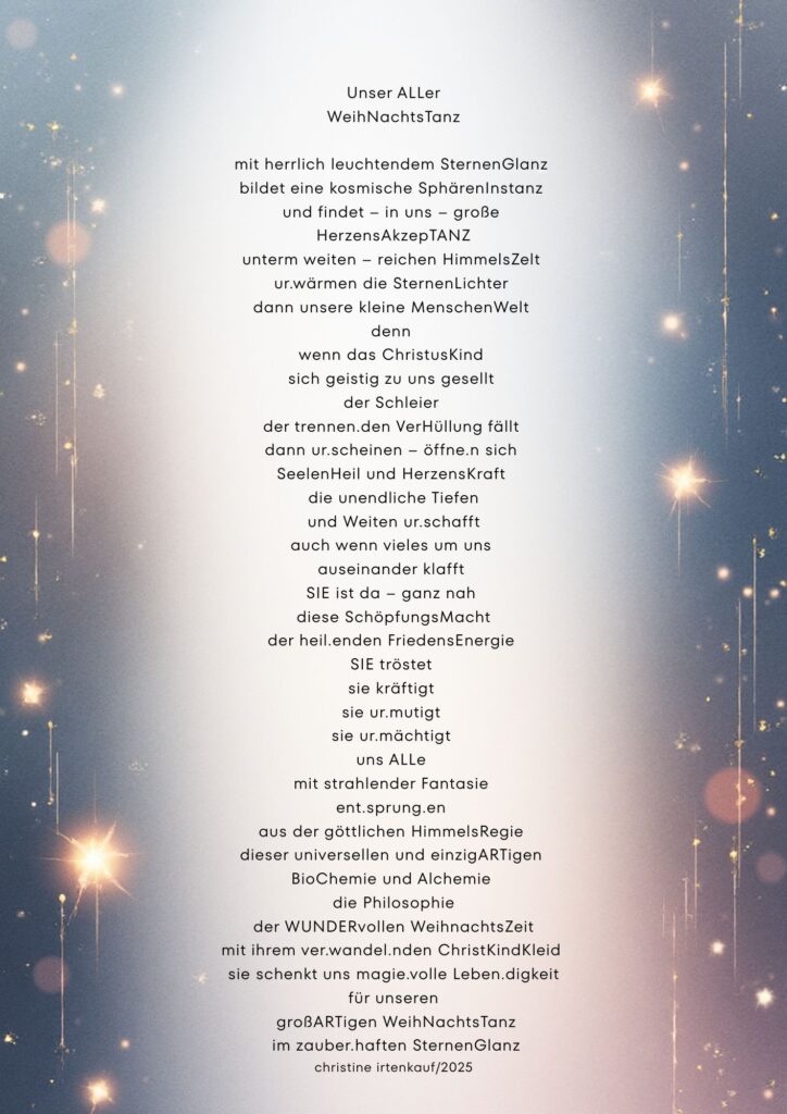 von Christine Irtenkauf wünschen wir allen Rebländer*innen eine schöne und lichtvolle Weihnachtszeit und einen guten Wechsel ins Neue Jahr 2026. DANKE für eure Treue 2025 – IHR seid ein Segen für uns und unser Projekt, denn die Welt braucht eure „Umarmung“!